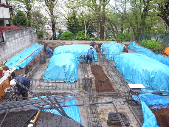 フォレストハウス(4) 現場報告 2010年04月17日 現場では、基礎の配筋工事が始まりました。基礎は、地中梁、土間スラブ、そして立ち上がりと、配筋をしてコンクリートを打つ工程を3回に分け製作します。現場周辺の木々は新緑が芽生え出しました。室内からこの景色を眺めることを想像するだけで気持ちが上がります。by koji