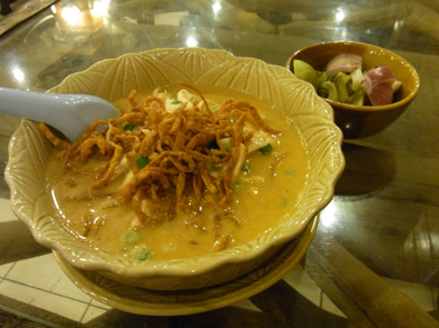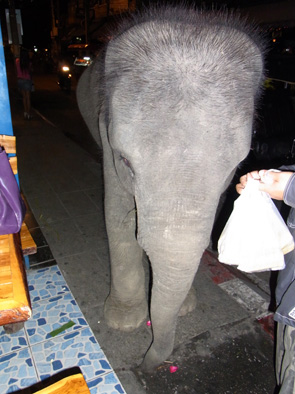遭遇 ひとりごと 2010年02月13日 夜道を歩いていて何かと鉢合わせしたとした時に一番びっくりする物ってなんだろうか?チェンマイはタイの第二の都市で長方形の堀と城壁に囲まれた旧市街とそれを取り巻く新市街とで構成されている。チェンマイ名物といえばカオソーイ。ココナッツミルクのマイルドなカレースープの麺料理でゆでた麺はもちろん、その上には揚げた麺が乗っているのが特徴。僕がチェンマイで水とコーヒー以外で口にしたものといえばこのカオソーイだけ。そのくらい美味い。夜はマーケットをブラブラ。ちなみに冒頭の質問の答え。僕は象だと思う。matsu