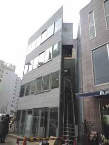無題 ひとりごと 2009年12月17日 前回ブログに書いた設計中の物件ですが、設計が完了して建設会社に見積りをお願いしているところです。昨日は建設会社の方達の現地調査の立会いで東京のとある所に行っていました。で、待ち合わせの時間まで少し時間があったので、駅のすぐ近くにあったある有名な若手建築家の方が設計をしたと思われる完成間近の建物をちょっとだけ見に行ってきました。交差点に面した角地にある三角形平面のボリュームに、隣に建物との間の隙間の空間に階段や設備機器を納めた箱がくっついているような構成の建物です。ポエムのように風景をつなぎあわせながら建物を考えていくような作風の方の作品にしては、論文のように構成が際立った作品だったのが以外でした。by tamura