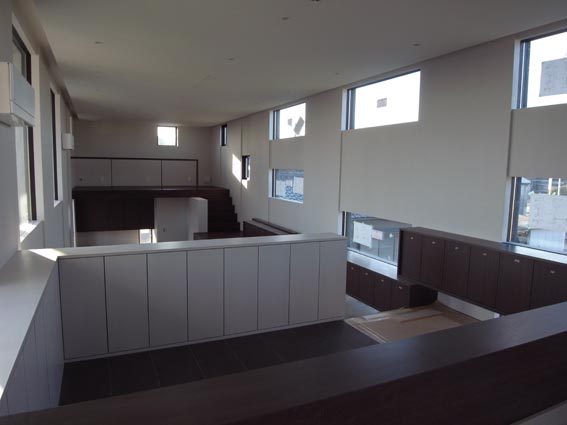 豊田の家(16) 現場報告 2009年12月22日 室内は、養生が外れ床・壁・天井の仕上が姿を現しました。全体の色味は、とてもバランスが取れていたのでほっと一安心です。仕上げ材の選定作業は、それぞれのカットサンプルにより色味や素材感のバランスをとり判断していきます。小さいもので検討しているので、実際の空間に落とし込まれた時、どのような印象になるのかをその時点で想像することは、とても難しいことです。年内は、ファサードのルーバー設置工事を残し全て完了する予定です。by koji PR