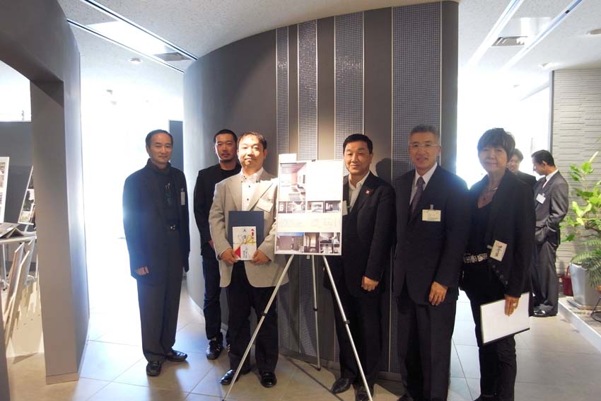 嬉しい出来事 最新情報 2009年10月24日 「鎌倉山の家」が、タイルメーカーダントー主催の「第10回特別記念TILE DESIGN CONTEST」において大賞を受賞致しました。写真は、先日行われた表彰式でのものです。このような賞を頂けるとは夢にも思っていなかったので、受賞の電話連絡を受けたときは、手がふるえてしまうほどでした。改めて、この物件に関われた事、そしてお施主様をはじめ、施行会社の皆様には、本当に感謝致します。表彰式では、審査員の方々、他に受賞された建築家の方々と歓談が出来、とても素敵な時間を過ごす事が出来ました。明日への糧となる一日でした。by koji