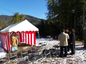 「相模原の家」地鎮祭 現場報告 2009年01月12日 先週の土曜日、相模原の家の地鎮祭が行われました。前日の雪が土の表面を覆っている中空は真っ青で、雪がきらきらしています。僕がこの事務所でお世話になり始めたころ、隣でmaruさんがガリガリ図面を書いていたのを覚えています。そんな建物が2月末の上棟を目指してこれから工事が始まります。yama PR