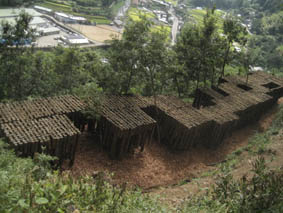 もくもくもく ひとりごと 2008年08月23日 ちょうど一年前、僕は徳島県の山の中にいました。国体と同じように年に一度開かれている国民文化祭に参加していました。そのときに作ったのが写真の作品です。森の中にもうひとつの森を作ろうとしたのが始まりでした。この森には国民文化祭を通じて得られた大量の間伐材を使用しています。一見非合理的に見えるかもしれませんが、大量の木を間伐材を使うことで,今ある森を守るという役割も担っています。実際の作品も山道にある獣道のように丸太の隙間から光が漏れ、もうひとつの森を作ることに成功しています。そしてその道を抜けて屋上に上ると絶景を見ながら会食が出来るようになっています。スタートから一年かけて地元の人とともに意見をまじえながら進んできました。苦労は耐えなかったのですが、完成したときの感動は計りきれないものでした。徳島県に行った際にはぜひお立ち寄り下さい。yama