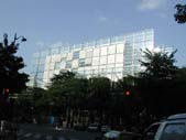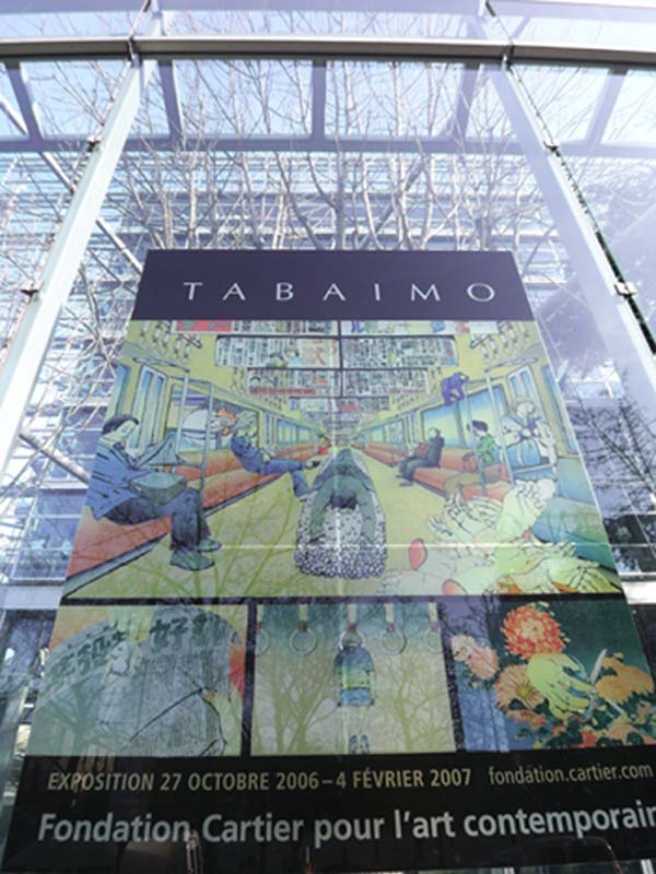 束芋 所員の趣味 2007年02月07日 今年の冬休みを利用してフランスを旅してきました。建築をひたすら見て廻る旅です。が、今回は建築の話ではありません。ちょうど、カルティエ財団の建物を見に行ったときにやっていた、日本人の若手現代美術家「束芋」さんの展覧会についてのお話です。(カルティエ財団はジャン・ヌーベルというフランス人建築家が設計した建物です) 以前、NHKのトップランナーという番組で取り上げられていてとても気になっていたアーティストです。アニメーションで現代日本社会の停滞感や日常生活の違和感を表現しています。表現テーマよりもアニメーション自体の木版調タッチや、浮世絵風の色づかい、コミカルなコマ送りがとても魅力的です。 現地では「にっぽんの通勤快速」「Midnight Sea」というビデオインスタレーションを観てきました。作品の内容はもちろんですが、鑑賞の場の設定が面白かったですね。「にっぽんの通勤快速」では、遠近法に従って設置された左右3つずつの映像に囲まれることになります。まさに自分自身も日本の電車に乗って、ほかの乗客を眺めているような感覚になりました。「Midnight Sea」では、暗幕テントの中に寝転んで、天井に映し出される映像を見ることになります。映像は、海の波がいくつもうねり、その中に髪の毛のような不気味なものが見え隠れするモノクロのアニメーションで、どっぷりその世界観に浸れました。by maru
