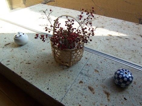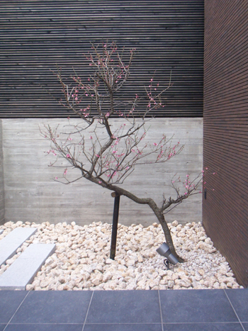 上北沢の家 現場報告 2007年02月14日 先日、「上北沢の家」へ行ってきました。 昨年末に竣工した中庭のある住宅です。「上北沢の家」の現在- 上の写真は、お施主様のご希望で植えた梅の木です。奥様から「梅の木にかわいらしく花が咲きましたよ」と教えてもらい、中庭まで一緒に見に行ってきました。まだ3分咲きというところでしょうか。本当にかわいらしく咲いていました。いざ咲かんとするピンクの梅の花に春の息吹を感じました。 これもかわいらしいです。玄関にさりげなく飾られたお椀と赤い実(千両でしょうか?)のブーケ。この小さいお椀でお香を焚かれていました。玄関に入った時感じたとても良い匂いは、実はこのお椀からのものでした。右のちゃぶ台は、カリンの無垢材で出来ています。部屋のインテリアとマッチしたものを選ばれていました。座布団もシンプルで良いです。お引渡し後、どのようにお住まいになられているか気になるものです。楽しく生活されている様子をうかがうことが出来ました。 by maru