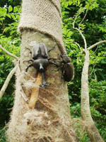小学生に戻る 現場報告 2006年08月10日 カブトムシだらけ。1本の木に20匹は超える数。先日、PROJECT-THの植栽を藤沢の植栽園に見てきた時に発見。シマトネリコという木に引っ付いてました。甥っ子にあげると言って目を輝かせてカブトムシを捕まえる甲村さん。オス8匹・メス2匹を持ち帰りました。 by maru