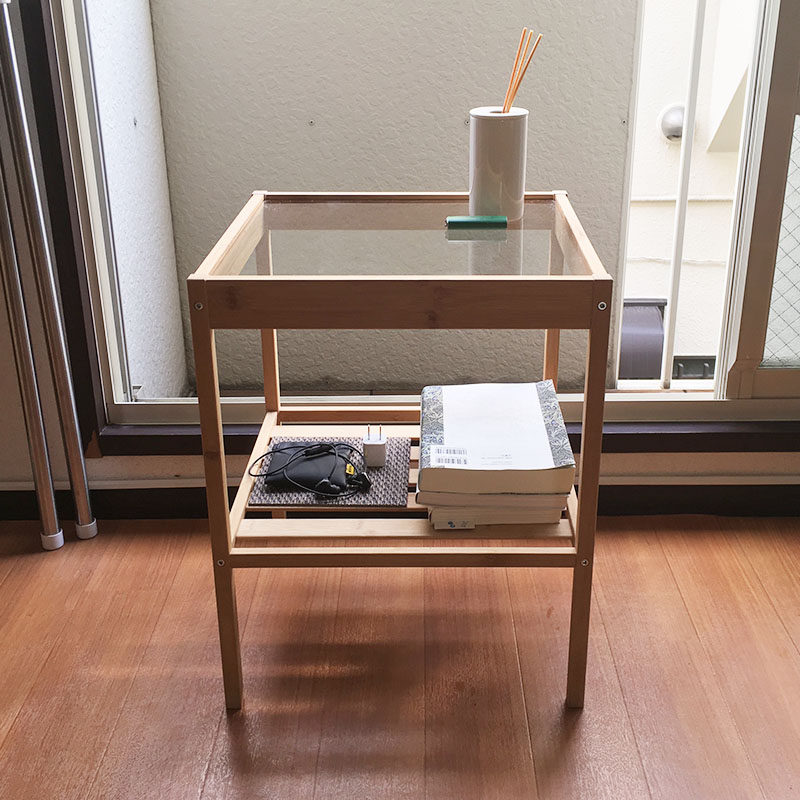 サイドテーブル ひとりごと 2018年06月30日 IKEAでサイドテーブルを購入しました。 NESNAというテーブルです。流石IKEAといったところで、1,999円というコストパフォーマンスの良さ。竹とガラスの素材が夏らしく涼やかな印象でとても使いやすいです。kaisei