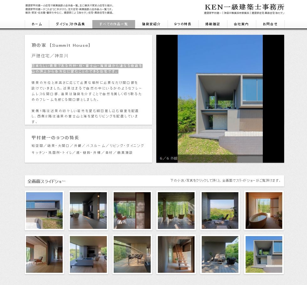 HP更新のお知らせ 最新情報 2018年06月14日 ホームページ更新のお知らせです。 材木座の家 改め 「頂の家」のホームページを更新しました。名前の通り山の頂から日本の代表的な情景である竹林・桜・富士山・海岸線から連なる稜線を各方位に望むことのできる住宅です。是非ご覧ください。mogi