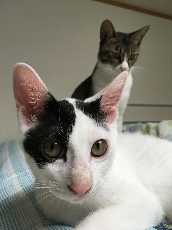 仔猫2 ひとりごと 2017年08月16日 お盆休みの間、実家に帰省して久しぶりに親子の猫に会ってきました。親猫(写真奥)はだいぶ家に慣れた様子。仔猫の方はずいぶんと大きくなり、顔立ちもはっきりしてきました。 昼間は一緒に遊んだり、夜は隣で寝たりと、今回もとても癒されてきました。kaisei