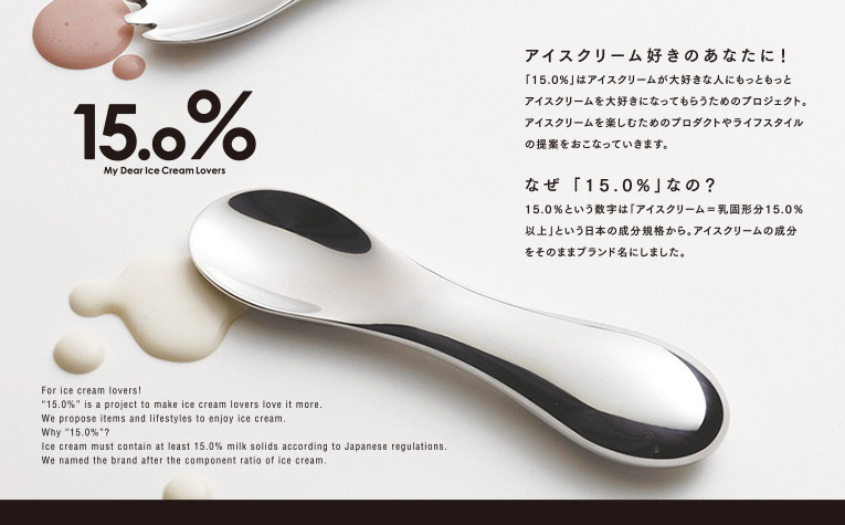 15.0% ひとりごと 2016年05月23日 アイスクリーム専用スプーン「15.0%」を友人から頂きました。 このスプーンは冷凍庫から取り出したばかりのかたーいアイスクリームに、熱伝導を利用して手の熱でアイスを溶かしながら食べられるというアイス好きにはたまらない逸品です◎デザインは一級建築士ながら幅広いモノを創造している寺田尚樹さんです。熱伝導を利用するというところに建築家らしい合理性を感じます。長く辛い暑い夏が近づいているので非常に重宝しそうです◎mogi