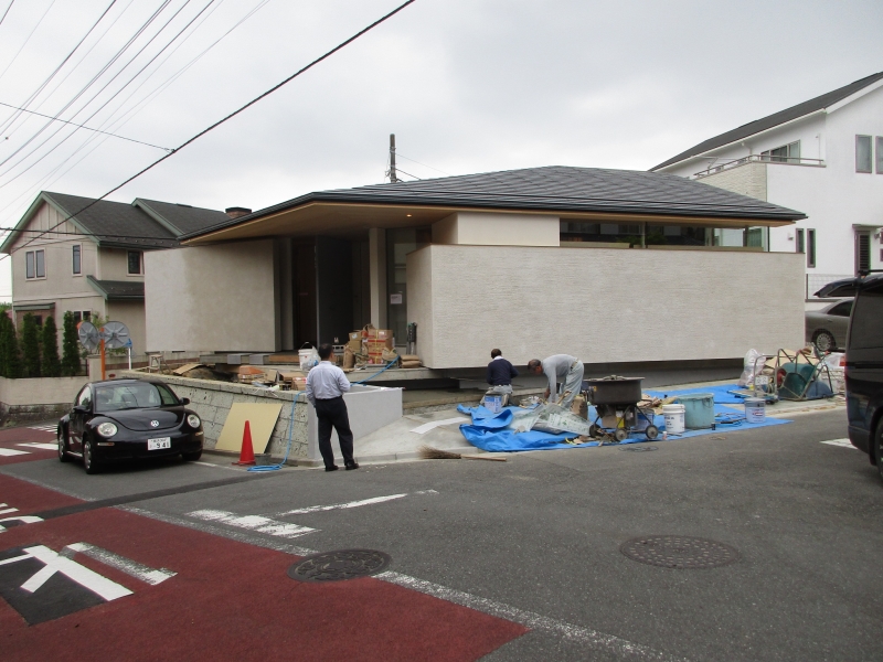 百合ヶ丘の家(17) 現場報告 2016年05月10日 完成が近づき、植栽が植えられました。開口部から見える雰囲気が変わり、非常に美しい空間になっています。 この日はお施主様のお計らいで、お食事に招待していただき、大変おいしいディナーをいただきました。 とても良い一日でした。souhei