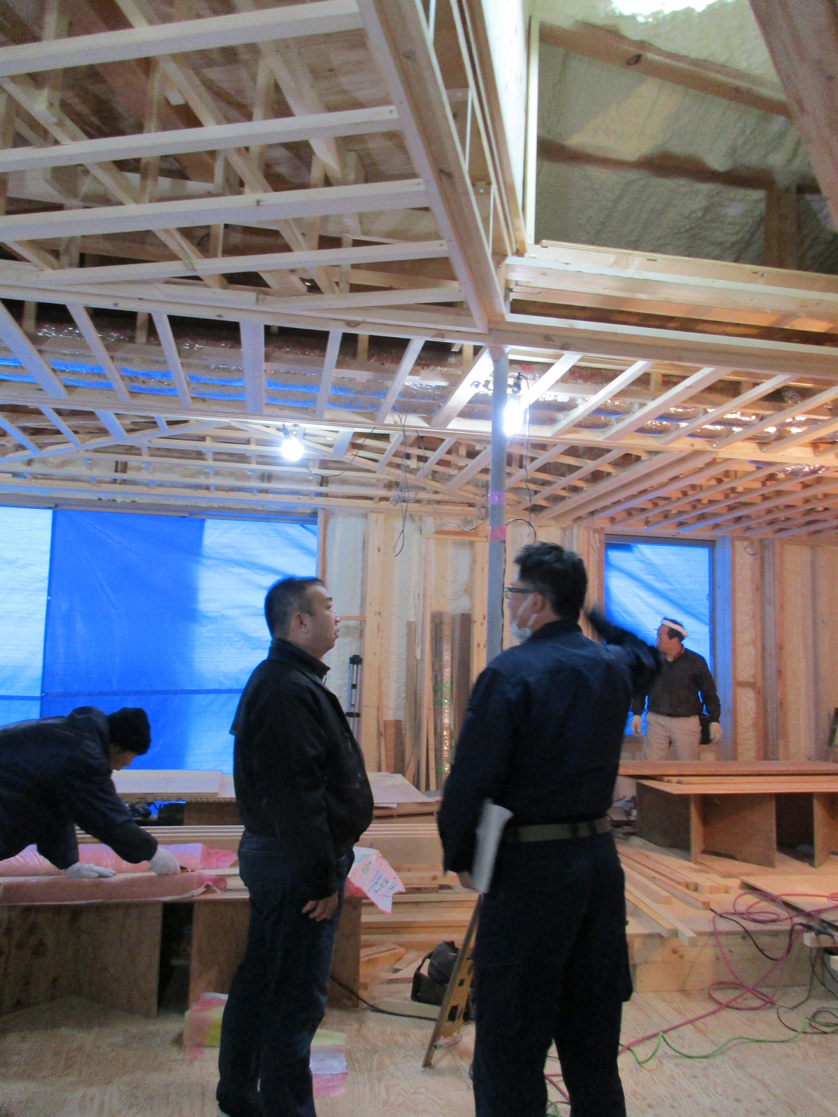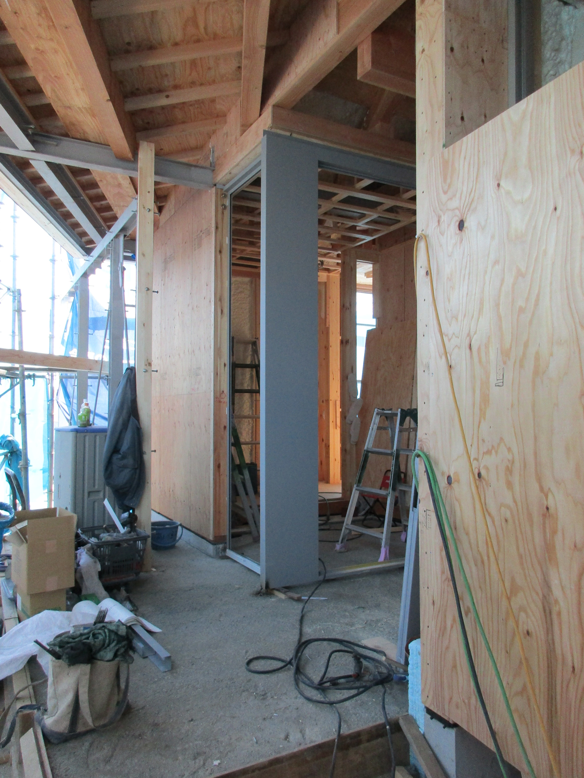 百合ヶ丘の家(8) 現場報告 2016年02月01日 工事も順調に進み、玄関扉や外構塀が見えてきました。 現場では、入念に打ち合わせを行い、今後の工事の段取りの確認などを行っています。 リビングから南側の開口部を映しています。開口部からの日射でいい感じです。 完成がますます楽しみです。souhei